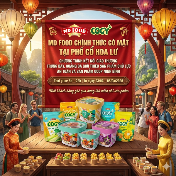 Từ ngày 03/04 đến 05/04/2026, thương hiệu nông sản sấy MDFOOD vinh dự tham dự Chương trình kết nối giao thương sản phẩm chủ lực và OCOP Ninh Bình được tổ chức tại Phố cổ Hoa Lư.