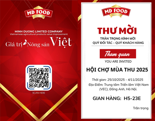 Từ ngày 25/10 đến 4/11/2025, Mdfood – thương hiệu nông sản sấy đến từ Công ty TNHH MTV Minh Dương – hân hoan góp mặt tại Hội chợ Mùa Thu 2025, diễn ra tại Trung tâm Triển lãm Việt Nam (VEC), Đông Anh, Hà Nội.