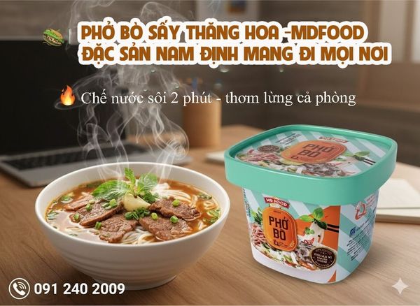 Không phải ai cũng có điều kiện thưởng thức phở bò Nam Định mỗi sáng. Với những người đi xa, phở bò đôi khi là nỗi nhớ, là điều giản dị nhưng khó tìm. Hộp phở bò sấy thăng hoa MDFOOD được tạo ra để kết nối khoảng cách ấy, để dù ở đâu, người ta vẫn có thể thưởng thức hương vị quen thuộc chỉ trong vài phút.