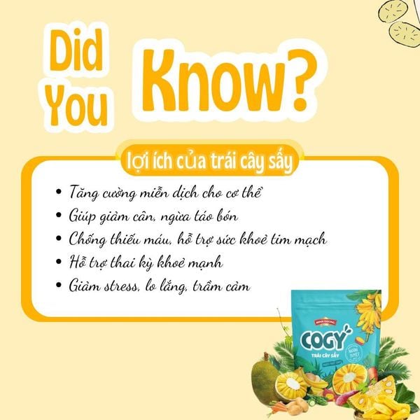 Vậy ăn trái cây sấy COGY có lợi ích gì? Tại sao sản phẩm này ngày càng được ưa chuộng? Hãy cùng khám phá chi tiết dưới đây.